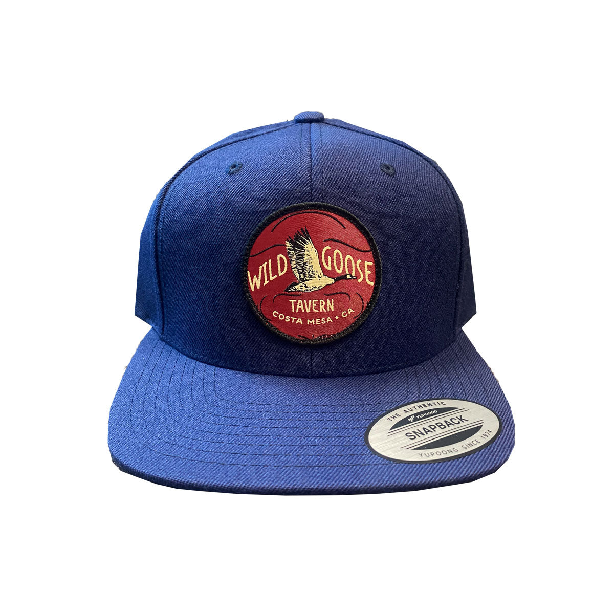 Navy Blue Snapback Hat with Red Wild Goose Patch